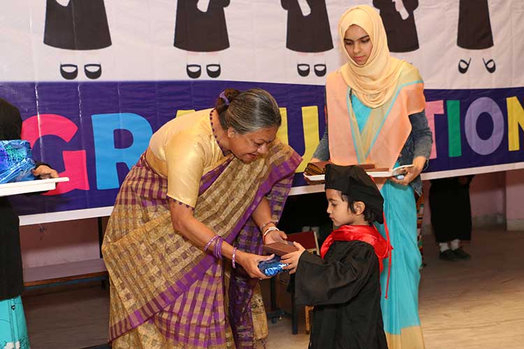 Bhopal Girl' School celebrated graduation day of class KG II on 25-1-2018 with various title and wishing them all the best for future. Welcome song was performed by our students and various dances were performed by the students of pre-primary section. Gifts were distributed among the students, they also enjoyed their photos session with different styles. Act performance by our students was highly appreciated by the parents. Later snacks were given to the parents.